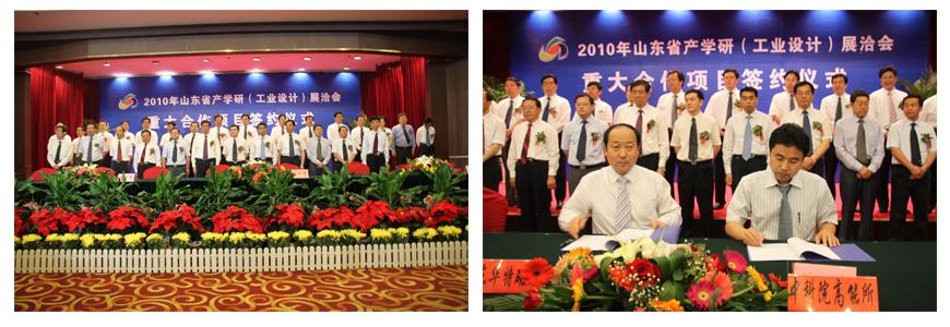 5月25日上午11:00,在济南舜耕山庄举行2010年山东省产学研(工业设计)展洽会和重大项目签约仪式。国家工信部、中科院及省领导亲临大会,各市分管市长、经信委主任、高校科研机构及企业代表参加了会议。